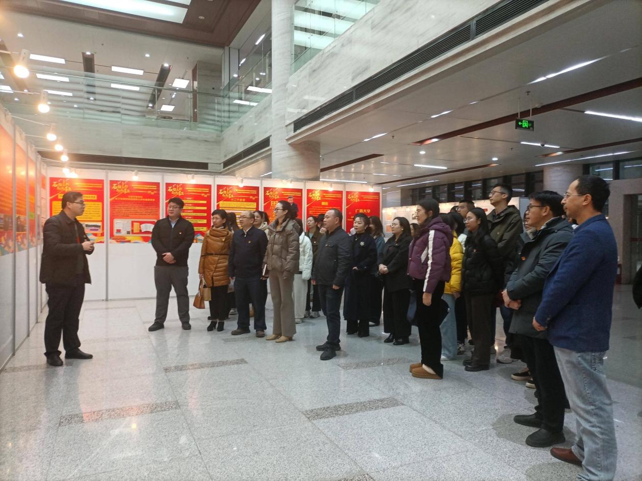随后,党员们移步至广西大学以铸牢中华民族共同体意识为主线开展民族团结工作成效展区。展览通过丰富的图片、详实的数据和生动的案例,全景式展示了学校近年来在深化民族团结进步教育、促进各民族师生交往交流交融、服务民族地区发展等方面取得的显著成效。